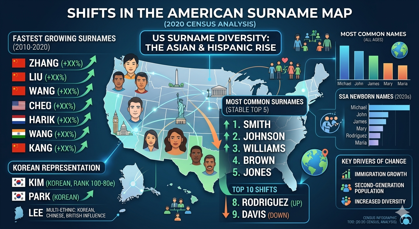 전문가들은 이러한 변화가 단순한 성씨 순위 이동이 아니라 미국 내 아시아계 인구 확대, 특히 한인과 중국계 이민 증가 흐름을 반영하는 대표적 지표라고 분석하고 있다.