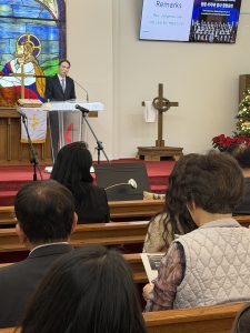 한편 공연이 끝난 뒤에는 유경동 총장이 이종무 목사에게 감사패를 전달했으며, 이후 그린스보로 한인연합감리교회 관계자들과 합창단 단원들이 함께 기념촬영을 하며 뜻깊은 시간을 마무리했다.