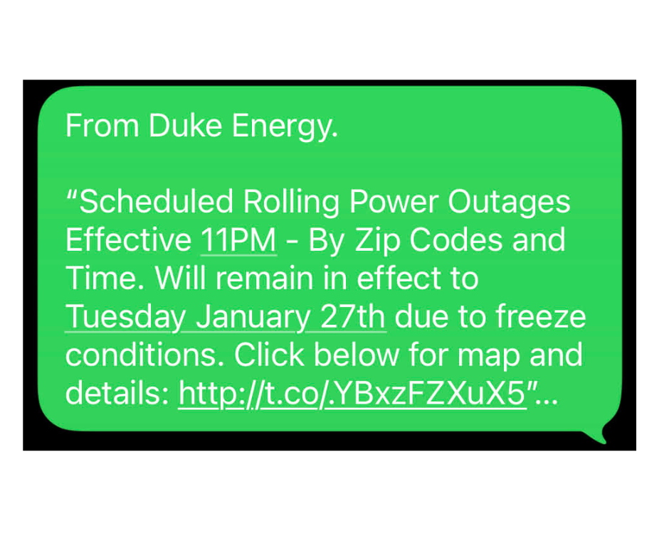 듀크 에너지 “정전 문자 사기 주의” — 겨울 폭풍 틈타 피해 확산