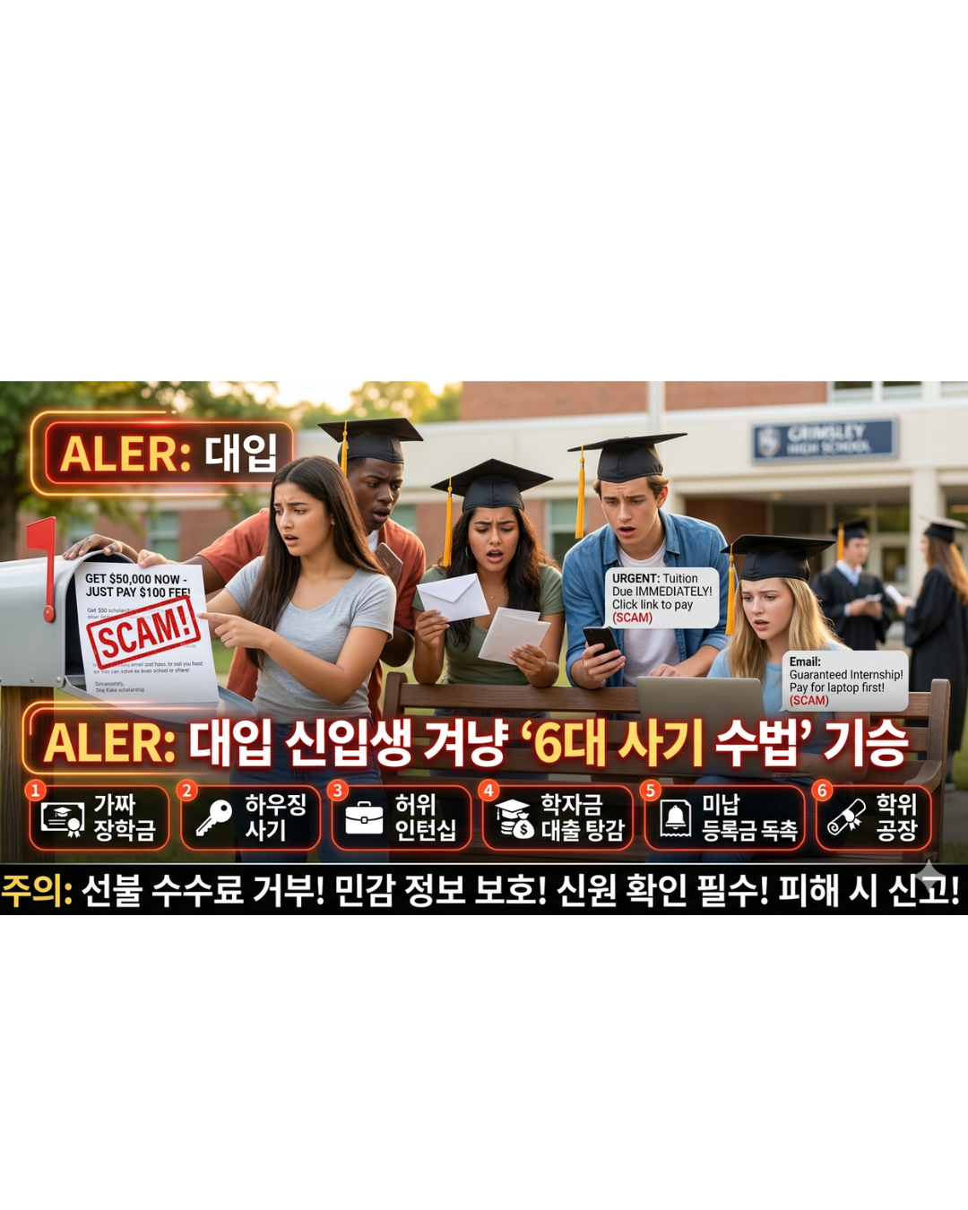 [그린스보로, N.C.=김선엽 기자] 최근 대입 합격의 기쁨을 누려야 할 고교 졸업반 학생들과 예비 대학생들을 노린 교활한 사기 행각이 기승을 부리고 있어 지역 사회의 각별한 주의가 요구된다.