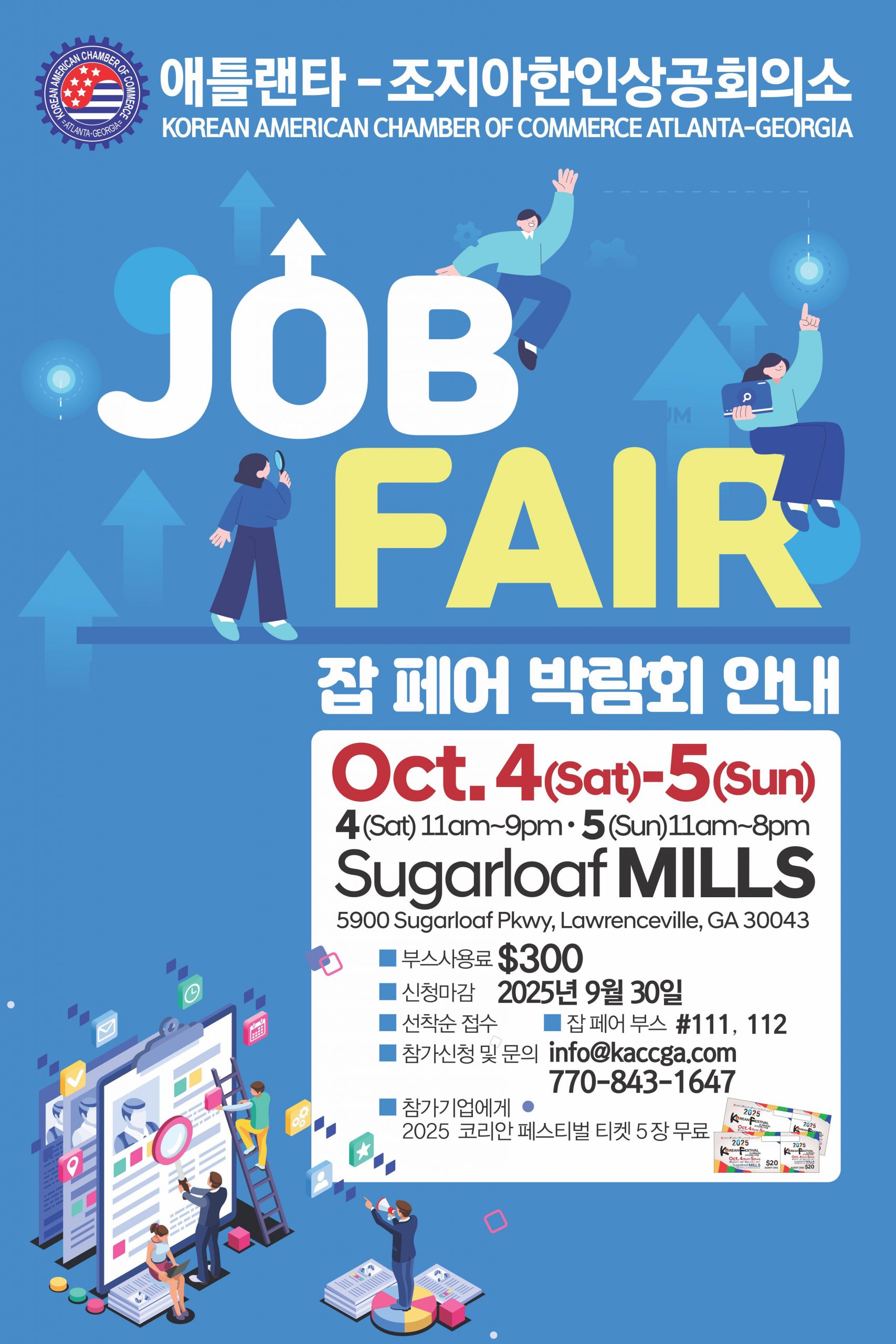 애틀랜타 상공회의소(회장 한오동)가 오는 10월 4일과 5일 양일 간 직업박람회(Job Fair)를 개최한다.