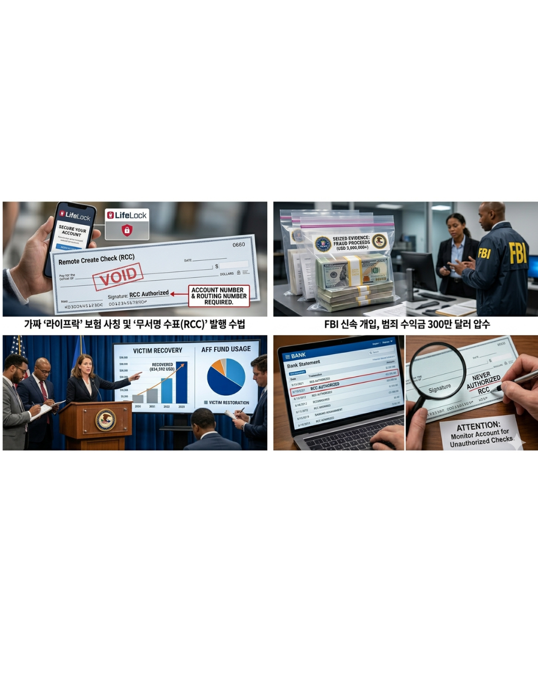 이번 사건에서 핵심 수법으로 사용된 ‘원격 생성 수표(RCC)’는 계좌 번호와 라우팅 번호만 있으면 발행이 가능해 보안에 취약하다는 지적이 나온다. 특히 고령층이나 금융 지식이 부족한 이들을 대상으로 “보안 서비스 가입”을 빙자해 정보를 캐내는 사례가 늘고 있어 주의가 요구된다.