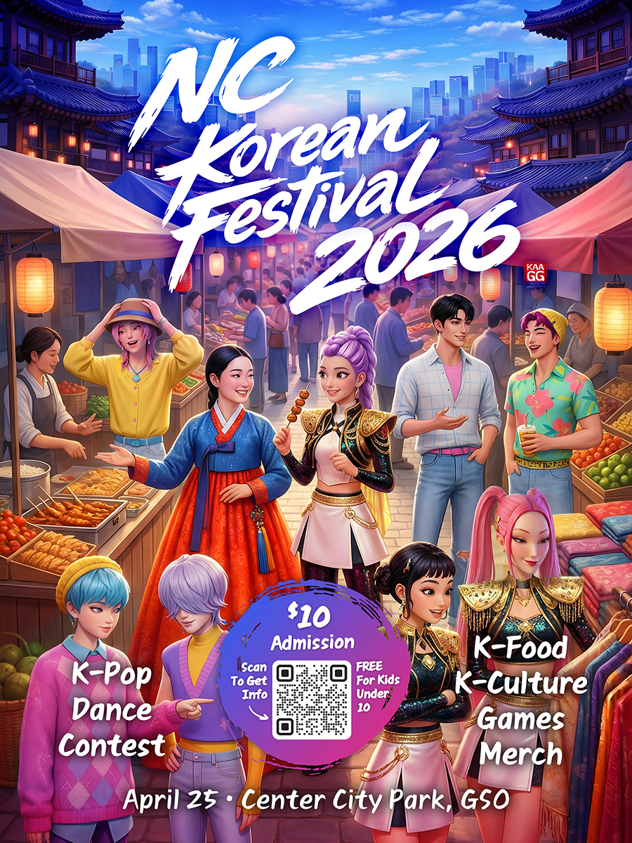 [그린스보로=김선엽 기자] 노스캐롤라이나 트라이어드 지역 최대의 문화 축제인 ‘2026 NC 코리안 페스티벌’이 이틀 앞으로 다가왔다. 그린스보로 인근지역 한인회(KAAGG, 회장 John Kim))가 주최하는 이번 행사는 오는 4월 25일(토) 오전 11시부터 6시까지 그린스보로 다운타운 센터 시티 파크(Center City Park)에서 화려하게 펼쳐진다.